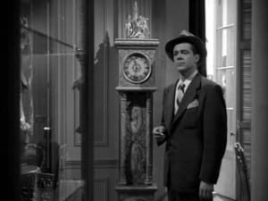 In the movie, Mr. Wilson, played by Edward G. Robinson, is an agent of the United Nations War Crimes Commission. He is hunting a Nazi fugitive, Franz Kindler (Orson Welles.) who has erased all evidence which might identify him, with the exception of an obsessive hobby…. a mania for—clocks.