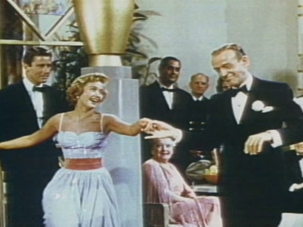 The production values are dazzling (especially for its time.) With a somewhat early application of “Technicolor”— Cinematographer Robert Planck brings high energy to the London exteriors and elegant interiors. The costumes by Helen Rose are exquisite, particularly for the women. Astaire, as usual, is stylish in his tuxedoes and formal wear. But the dated rehearsal and casual outfits seem distracting at times. The music by Burton Lane and Alan Jay Lerner is tuneful and memorable. I find myself humming them afterward…the ultimate test. The direction by Stanley Donen is, for the most part, on target. He seems to have a solid understanding of how to convince an audience that the essentially fanciful premise of a musical…is, in actuality, realistic enough to be acceptable.
