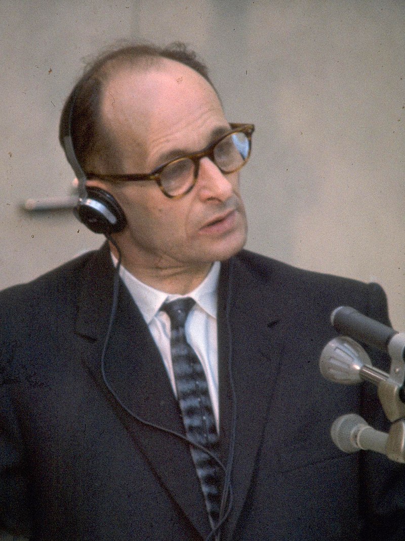Eichmann at “work”NAZI WAR CRIMINAL ADOLF EICHMANN SITTING IN A GLASS CELL, AT HIS TRIAL AT BEIT HA’AM IN JERUSALEM…צילום תקריב של הפושע הנאצי אדולף אייכמן בתוך “תא הזכוכית” המשוריין, במשפטו שנערך בבית העם בירושלים.