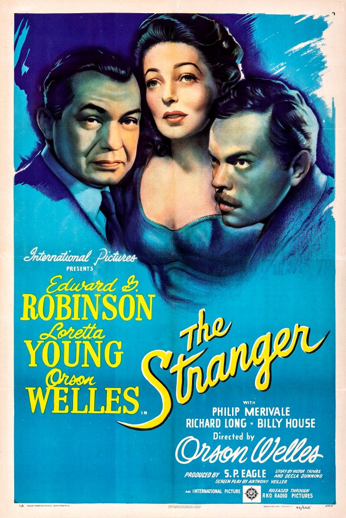 I recently rewatched the 1946 film noir, The Stranger. I found the movie to be intense, suspenseful and incredibly thought provoking. The film stars Edward G. Robinson, Loretta Young, and Orson Welles. Mr. Welles also directs. The film concerns a war crimes investigator tracking a high-ranking Nazi fugitive to a small Connecticut town. It has the distinction of being is the first Hollywood film to present documentary footage of the Holocaust.
