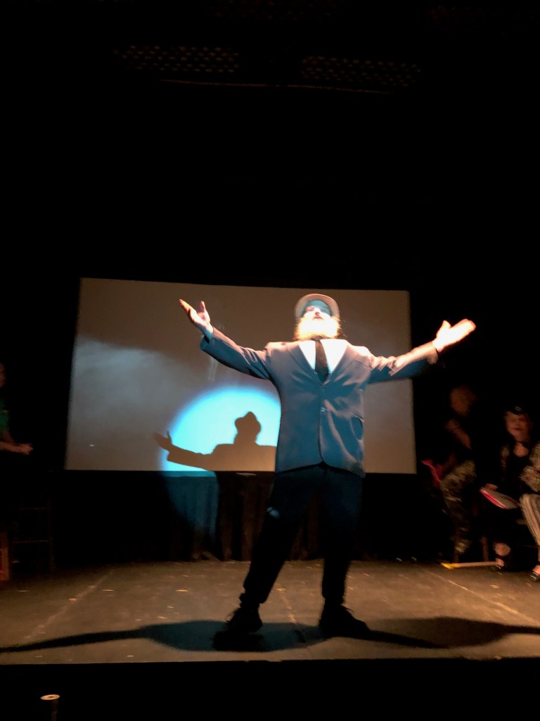 The audiences were small and for the most part, not very responsive. Again, I take responsibility. My initial intention was to do a little audience prep before the show began. But my own health issue (I came down with a case of COVID-19) stood in the way of that happening. I’m not sure it would have made a big difference, but it may have helped, somewhat. There were a few good audience responses though. When our friend Dan, as Inspector Clay called out “Marco,” a small voice from the audience echoed “Polo.” That person was on our wavelength.